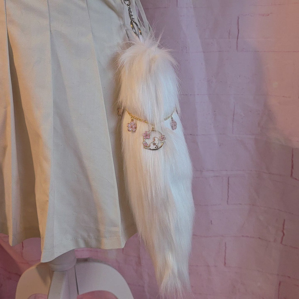 Handmade faux fur tail keychain for handbags and belts
